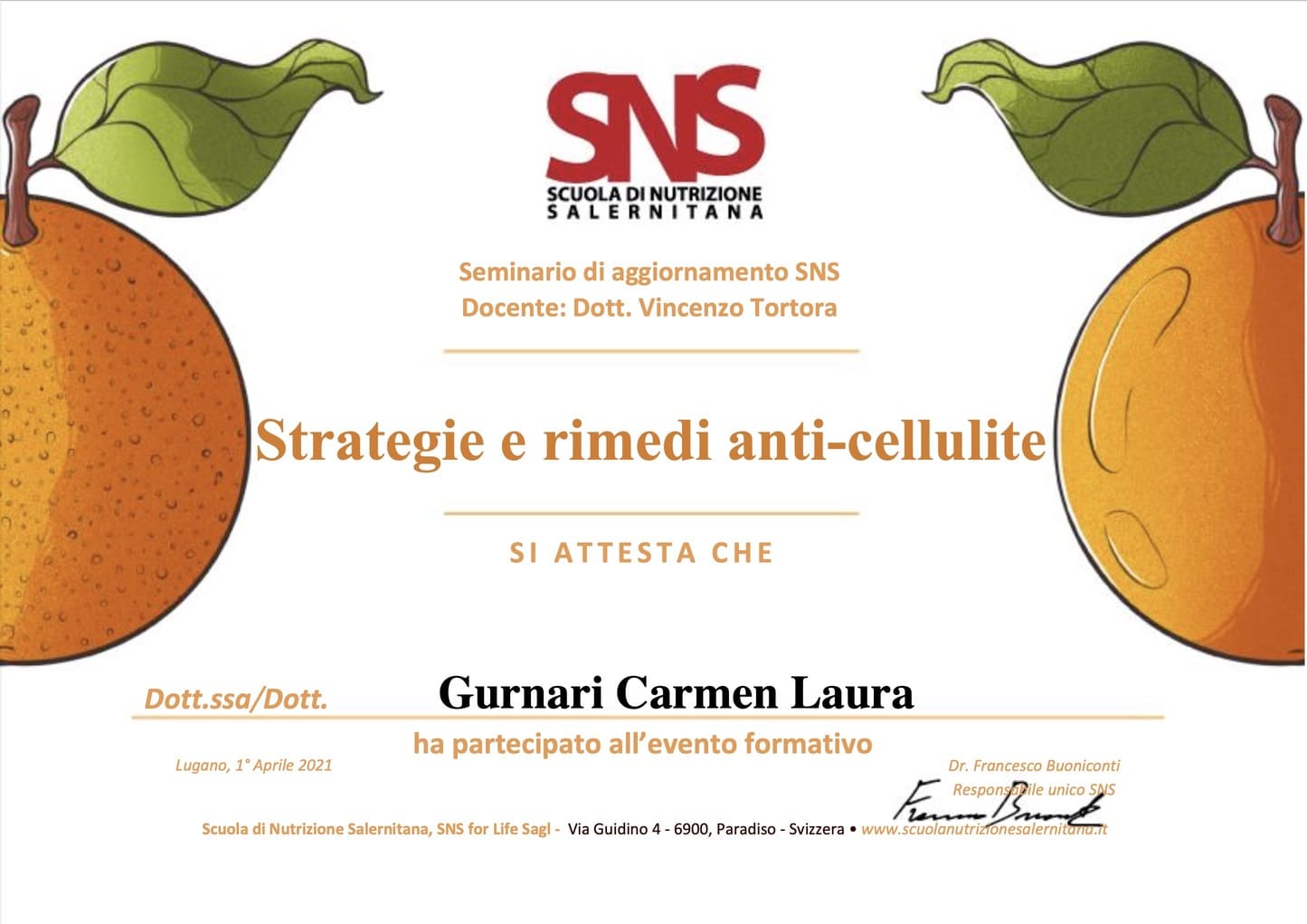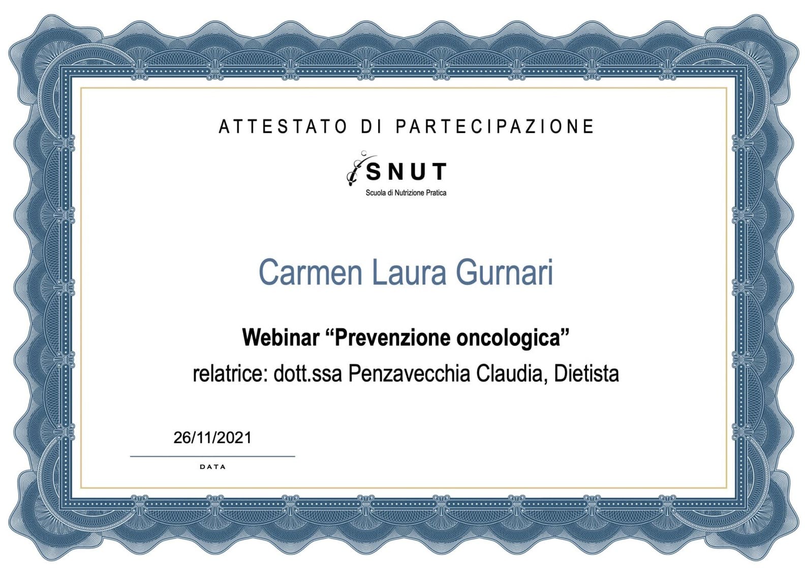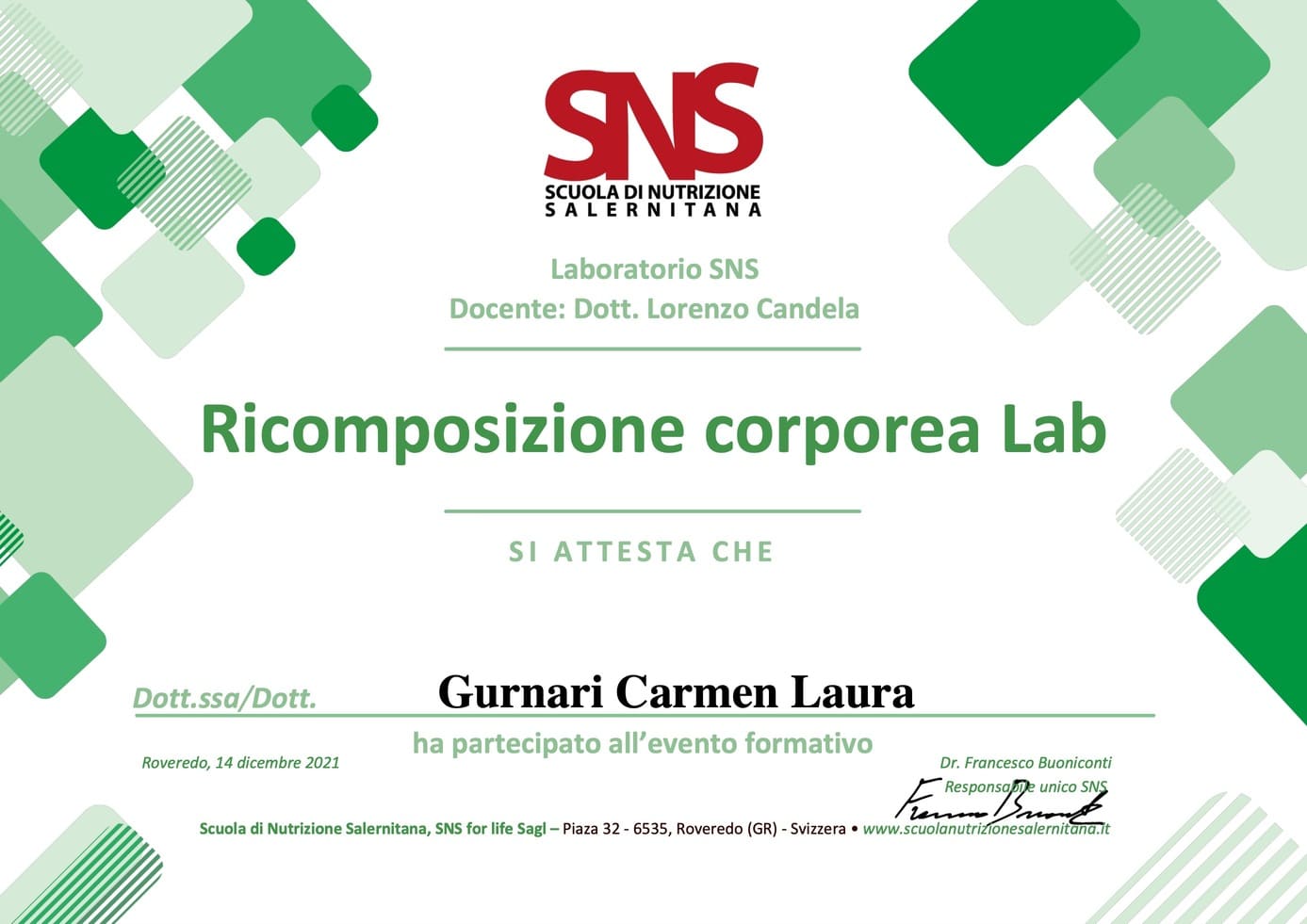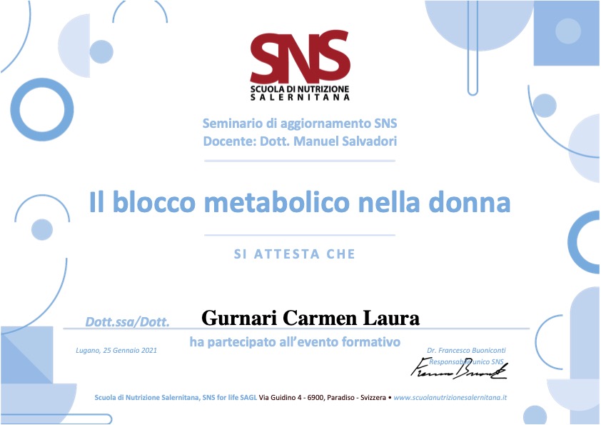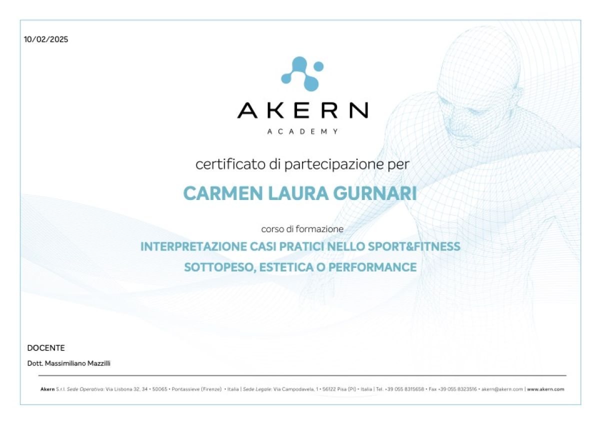 - Gennaio 2022: Iscrizione all’Albo Nazionale dei Biologi (AA_091747).